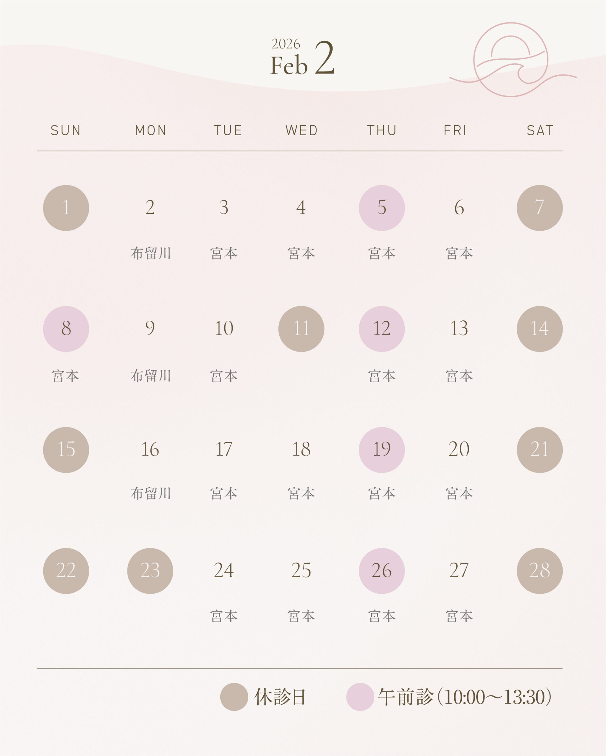 📅2026年2月の診療カレンダーです📅