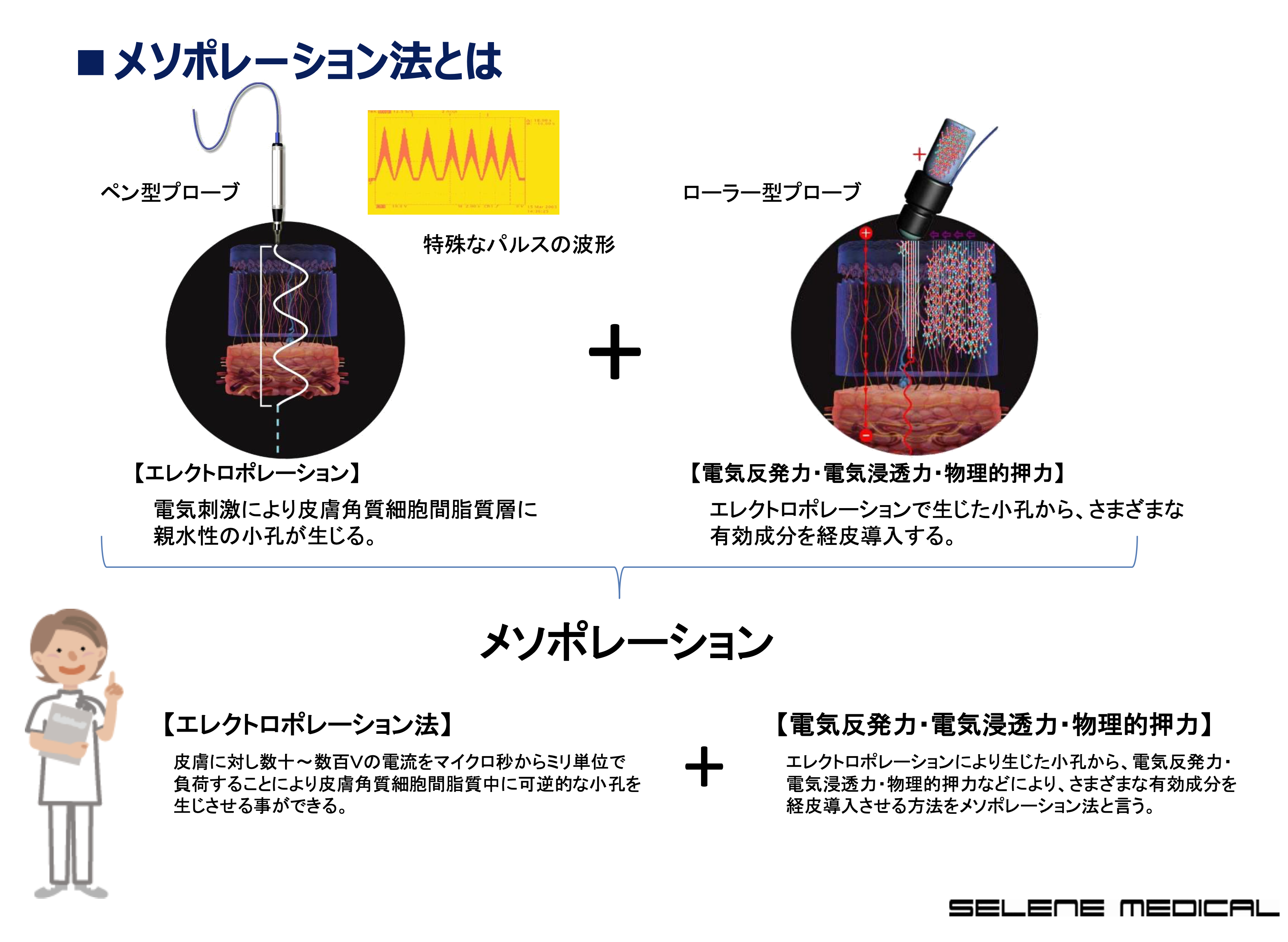 医療機関専用の美容機器であるメソナJの最大の特長は、何といっても「メソポレーション法」というユニークな技術でお肌を健やかにするという点です。